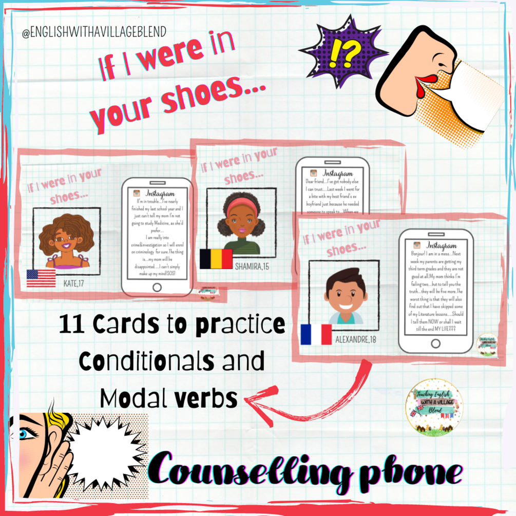 Juego Comunicativo para utilizar tanto las condicionales como los verbos modales (advice, possibility).El documento incluye los siguientes materiales: